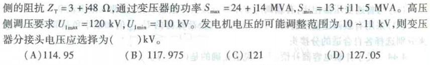 <p>—升压变压器,其额定容量为31.5MVA,变比为121±2x2.5%/10.5,归算到髙压 <img alt="" sr