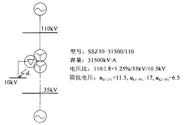 某110kV变电站有110kV、35kV、10kV三个电压等级,设一台三相三卷变压器,系统图如下图所示,主变110kV中性点釆用直接接地,35kV、10kV中性点釆用消弧线圈接地。(10kV侧无电源,且不考虑电动机的反馈电流)