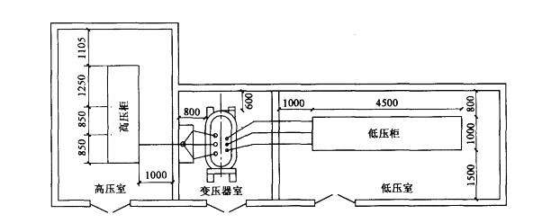 找出下面的10kV变电所平面布置图(尺寸单位:mm)中,有几处不符合规范的要求?并请逐条说明正确的做法是什么。图中油浸变压器容量为1250kV.A,低压柜为固定式配电屏(注:图中未标注的尺寸不用校验)。()