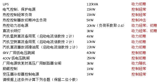 某2×300MW火电厂,每台机组装设3组蓄电池,其中2组110V蓄电池对控制负荷供电。每台机组的220V直流系统间设有联络线。蓄电池选用阀控式密封铅酸蓄电池(贫液)(单体2V),浮充电压取2.23V,均衡充电电压取2.3V。110V系统蓄电池组选为52只,220V系统蓄电池组选为103只。现已知每台机组直流负荷如下