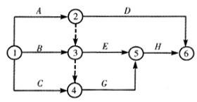在下列双代号网络图中,互为平行工作的有()