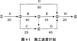 某建设单位和施工单位按照《建设工程施工合同(示范文本)》签订了施工合同,合同中约定:建筑材料由建设单位提供;由于非施工单位原因造成的停工,机械补偿费为200元/台班,人工补偿费为50元/日工;总工期为120天;竣工时间提前奖励为3000元/天,误期损失赔偿费为5000元/天。经项目监理机构批准的施工进度计划如图4—1所示(单位:天)。