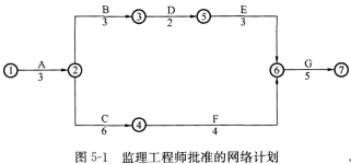 某单位工程为单层钢筋混凝土排架结构,共有60根柱子,32米空腹屋架,监理工程师批准的网络计划如图5—1所示(图中工作持续时间以月为单位):