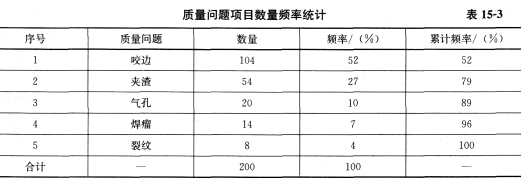 1.质量问题的累计频率如表15—3所示。