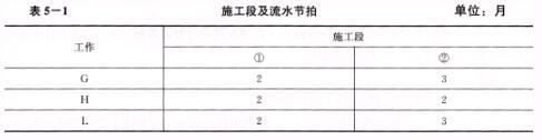 该方案将G、H、L三项工作均分成两个施工段组织流水施工,数据见表5~1。