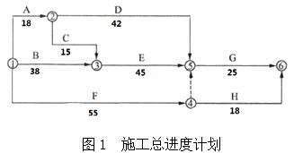 某工程,建设单位与施工单位按照《建设工程施工合同(示范文本)》签订了施工合同,经总监理工程师批准的施工总进度计划如图1所示(时间单位:天),各项工作均按最早开始时间安排且匀速施工。