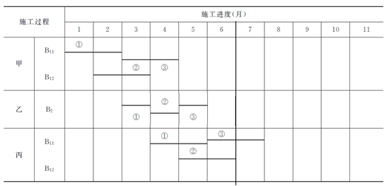 4. (1)B分部工程三个施工过程的流水节拍的最大公约数为1,流水步距为1个月;