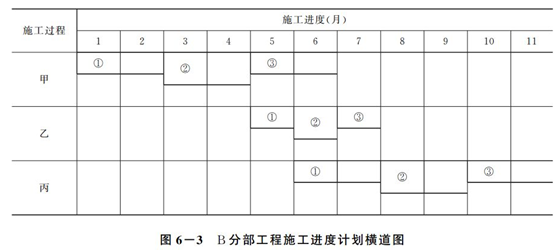 (4)B分部工程调整后的流水施工进度计划横道图如下: