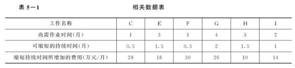 事件3:建设单位要求本工程仍按原合同工期完成,施工单位需要调整施工进度计划,加快后续工程进度。经分析得到的各工作有关数据见表5-1。
