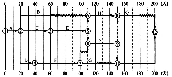 某工程,建设单位通过招标与甲施工单位签订了土建工程施工合同,包括A~I共9项工作,合同工期200天;与乙施工单位签订了设备安装施工合同,包括P、Q共2项工作,合同工期70天。