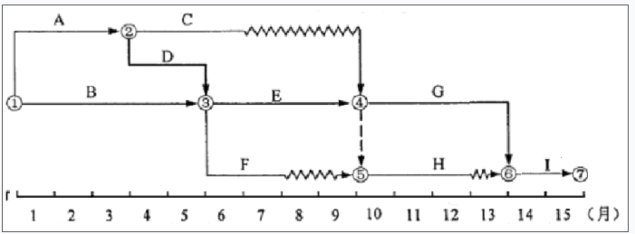 某工程,合同工期15个月,工程师批准的施工进度计划如图5-1所示。