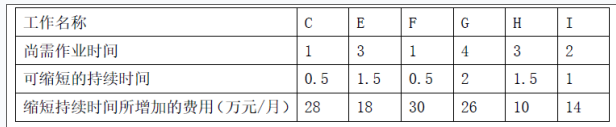 问题5:最佳调整方案为:E 工作缩短一个月,增加费用18 万元。