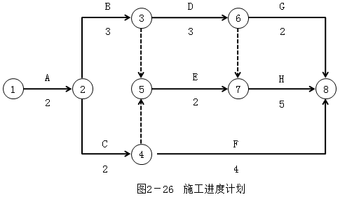 某工程项目的施工招标文件中表明工程采用综合单价计价方式,工期为15个月。承包单位投标所报工期为13个月。合同总价确定为8000万元。合同约定:实际完成工程量超过估计工程量25%以上时允许调整单价;拖延工期每天赔偿金为合同总价的1‰,最高拖延工期赔偿限额为合同总价的10%;若能提前竣工,每提前1天的奖金按合同总价的1‰计算。承包单位开工前编制并经总监理工程师认可的施工进度计划如图2-26所示。