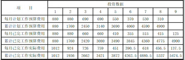 (4)费用偏差CV=已完工作预算费用-已完工作实际费用=4775 - 5337=- 562(万元),超支562万元。