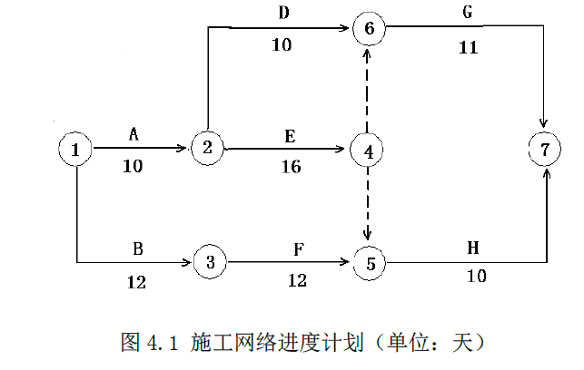 在工程开工前,承包商提交了施工网络进度计划,如图4.1所示,并得到监理工程师的批准。