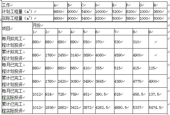2.计算工作H各月的已完工程计划投资和已完工程实际投资。