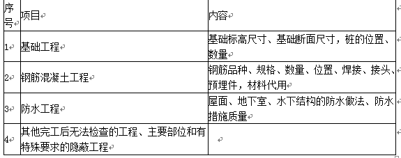 隐蔽工程验收的主要项目及内容 表2-1