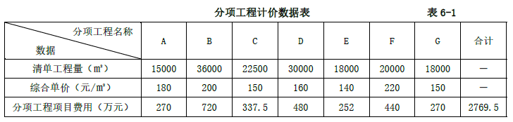 背景:某工程采用工程量清单招标,确定某承包商中标。甲乙双方签订的承包合同包括的分项工程清单工程量和投标综合单价见表6-1。工程合同工期12个月,措施项目费84万元(含文明施工费为16万元),其他项目费100万元(含暂列金额30万元,计日工3万元,其他均为专业工程暂估价),规费和增值税为分部分项工程费、措施项目费、其他项目费之和的15%。