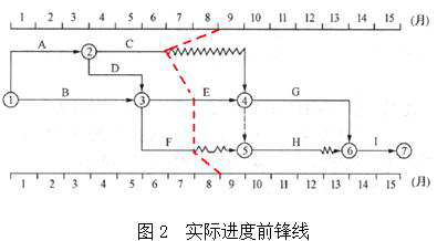 ?、事件2中,绘制第8月末时的前锋线图,并指出各工作的实际进度及对总工期的影响。