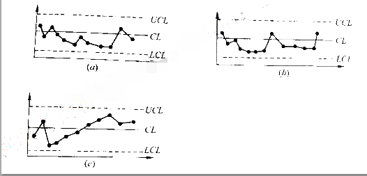 2、施工中发现混凝土质量有波动。采用动态控制图进行控制,发现三个组的控制图如下