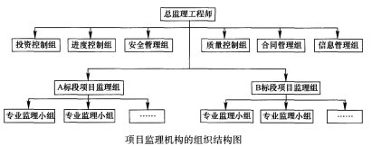 (1)监理单位设置的项目监理机构的组织结构图,如下图所示。