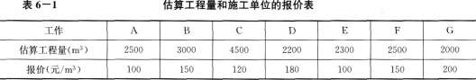 招标文件中工程量清单所列各项工作的估算工程量和施工单位的报价如表6—1所示。