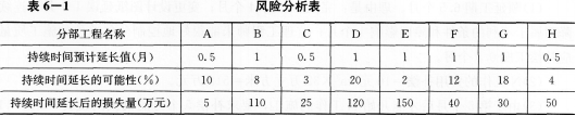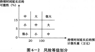 背景资料:某工程,施工单位向项目监理机构提交了项目施工总进度计划(图6—1)和各分部工程的施工进度计划。项目监理机构建立了各分部工程的持续时间延长的风险等级划分图(图6--2)和风险分析表(表6—1),要求施工单位对风险等级在“大”和“很大”范围内的分部工程均要制定相应的风险预防措施。