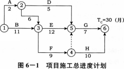 1.关键线路:(1)B→E→G(或1→3→5→6); (2)B→F→H(或1→3→4→6)。