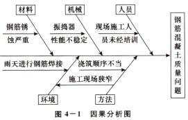 3.将项目监理机构针对事件3分析的①~⑥项原因分别归入影响工程质量的五大要因(人员、机械、材料、方法、环境)之中,并绘制因果分析图。