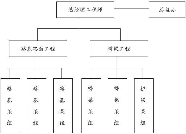 (2)宜采用直线制的监理组织结构形式。因为,该公路工程建设项目由两家施工单位分别承包,而直线制的组织结构适用于监理项目能划分为若干个相对独立子项的大、中型建设项目。直线制的监理组织结构示意图如下: