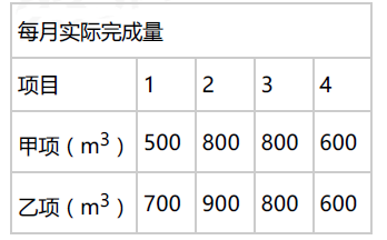 某高速公路工程项目业主与承包人签订了公路工程施工合同,合同含有两个子项工程,估算工程量甲项为2300m3,乙项为3200m3,每月实际完成量见下表。其中甲项每立方米中含人工费为30元、机械费为20元、材料费为100元,综合费率为20%。乙项单价为160元/m3。合同中有如下规定: