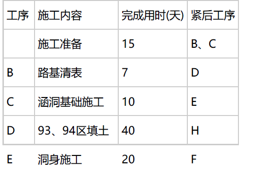 某一级公路一段路基施工,经监理工程师批准的施工计划如下表所示。