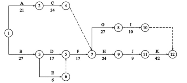 某高速公路路基工程施工标段,合同工期为145天,驻地监理工程师批准的进度计划网络图如下图所示: