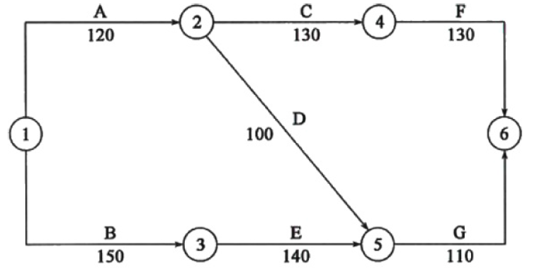 某施工单位与建设单位按《公路工程标准施工招标文件~(2009年版)签订了施工承包合同,合同工期400天,合同总价5000万无。施工前监理工程师已批准了施工单位提交的施工进度计划,其中的网络计划图如图2-1所示。