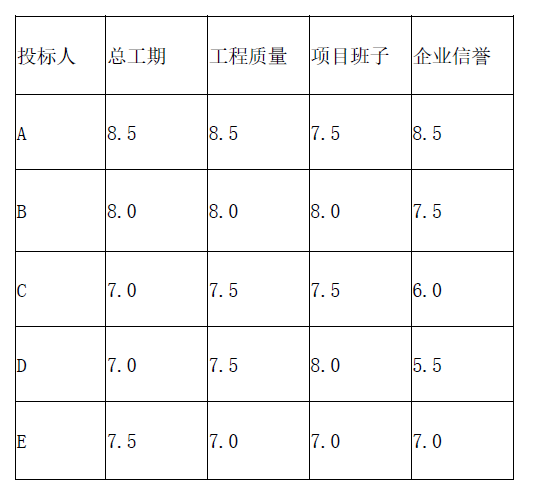 某混凝土重力坝工程采用公开招标方式进行施工招标,有A、B、C、D、E五家投标人参加投标。采用资格后审,五家投标人初步审查均通过,进人详细评审阶段。