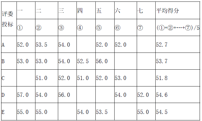 技术标各项内容的得分,为七名评委评分中去除一个最高分和一个最低分后的算术平均数。