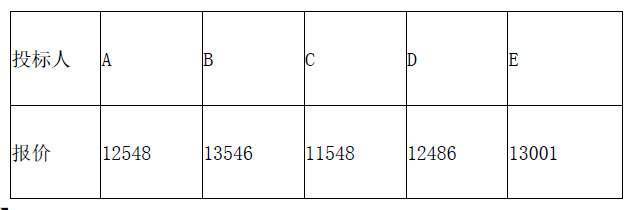 (6)高于合理低价的投标人的报价由低到高排序为:D(12486 万元)、A(12548 万元)、E(13001万元)、B(13546 万元)。