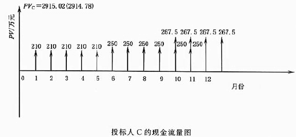 (3)计算投标人C 经评审的投标价的现值PVc :