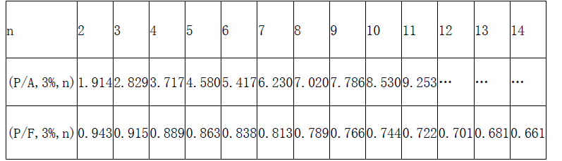 PVA=A1A(P/A,3%,4)+A2A(P/A,3%,6)(P/F,3%,4)+A3A(P/A,3%,3)(P/F,3%,8)–A4A(P/F,3%,12)