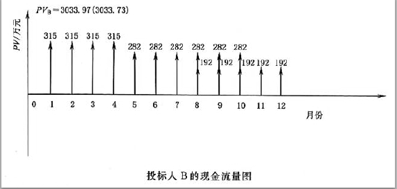 (2)计算投标人B 经评审的投标价的现值PVB
