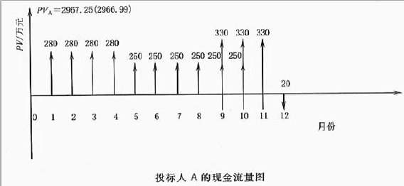 (1)计算投标人A 经评审的投标价的现值PVA:
