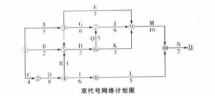某项工程项目分解后,根据工作间的逻辑关系绘制的双代号网络计划如下图(单位:天)所示。工程实施到第12天末进行检查时各工作进展如下:A、B、C三项工作已经完成,D与G工作分别已完成5天的工作量,E工作完成了4天的工作量。