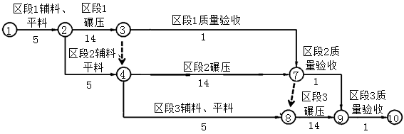 某堤防工程填筑,堤防长度为1.5km,填筑工程量为9万m3,计划分成3个区段施工。填筑工期为60天。每个工序只有一个施工队。每个区段施工工序具体施工参数见下表。