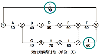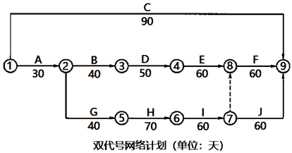 事件1:承包人根据工作明细表编制双代号网络计划见下图。