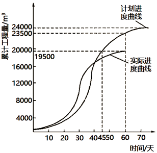 3.根据事件3判断第60天堤身填筑工程实际进度与计划进度比较提前(或拖后)的工程量、提前(或拖后)时间,并预测未来的工期(假设其他工作按原计划进行)。