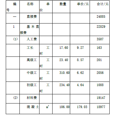 某水利工程溢洪道挡墙为C25混凝土工程,其工程量为8700m3,其单价分析见下表(不含拌制和运输费用)。(计算时要求合计列数据取整)