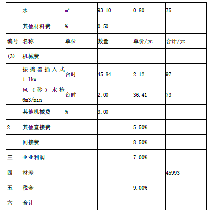C25 混凝土工程( 100m3)= 直接费+ 间接费+ 企业利润+ 材差+ 税金