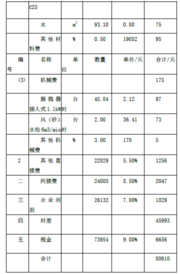 C25 混凝土工程(100m3)/100=80.61(元)