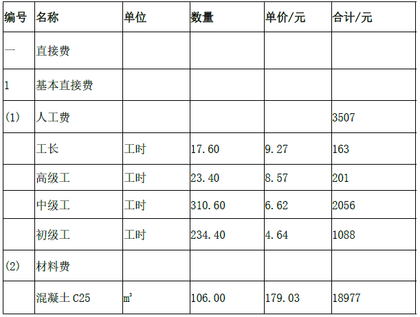 2.完善表中的内容,并计算C25混凝土工程(m3)单价。