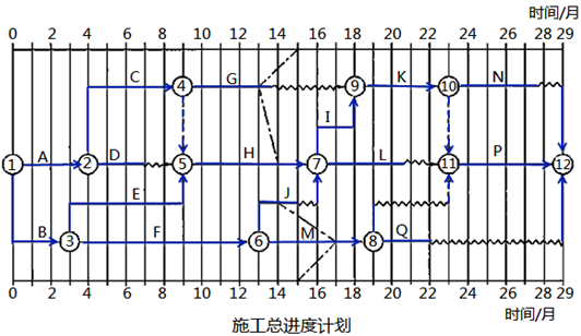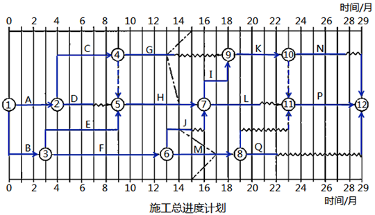 某水电站枢纽工程,发包人与承包人按照《水利水电工程标准施工招标文件(2009年版)》签订了施工合同。经总监理工程师批准的施工总进度计划见下图(时间:月),各工作均按最早开始时间安排且匀速施工。